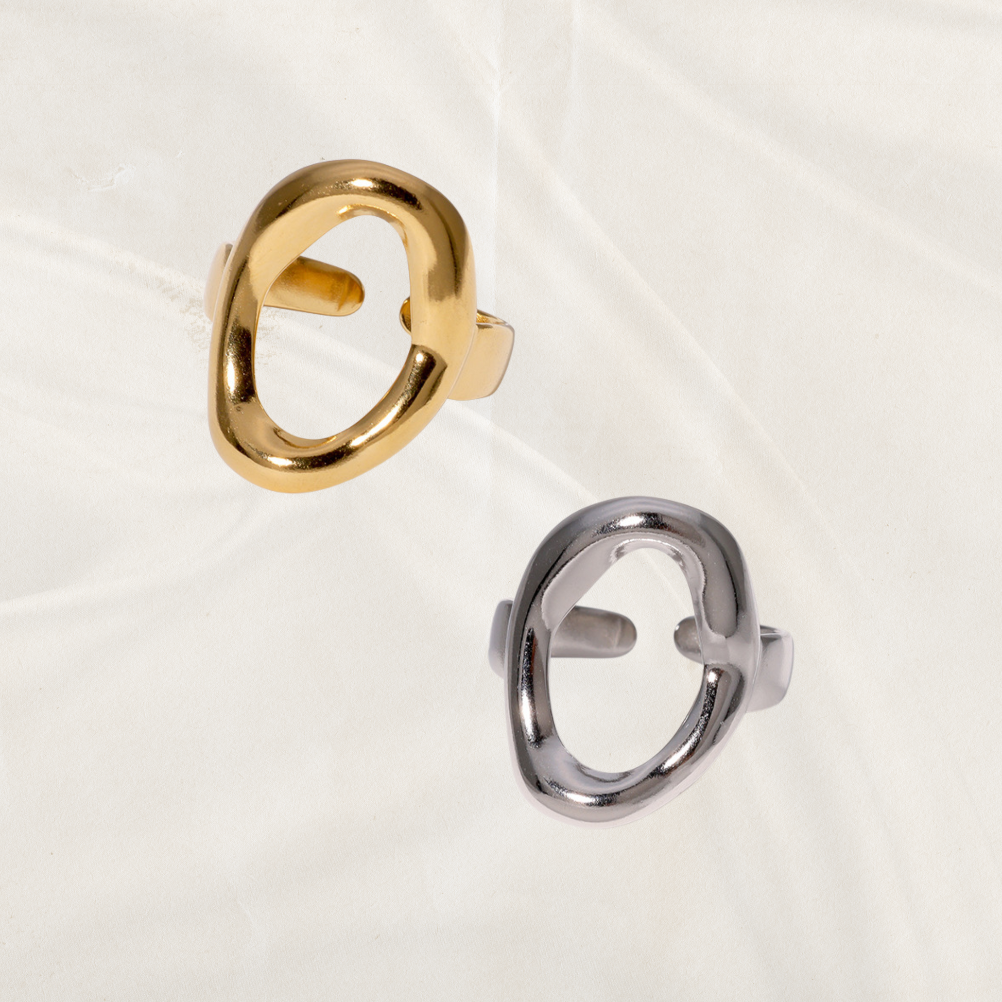 Affirmez votre style avec cette bague moderne et minimaliste, disponible en acier inoxydable doré ou argenté.