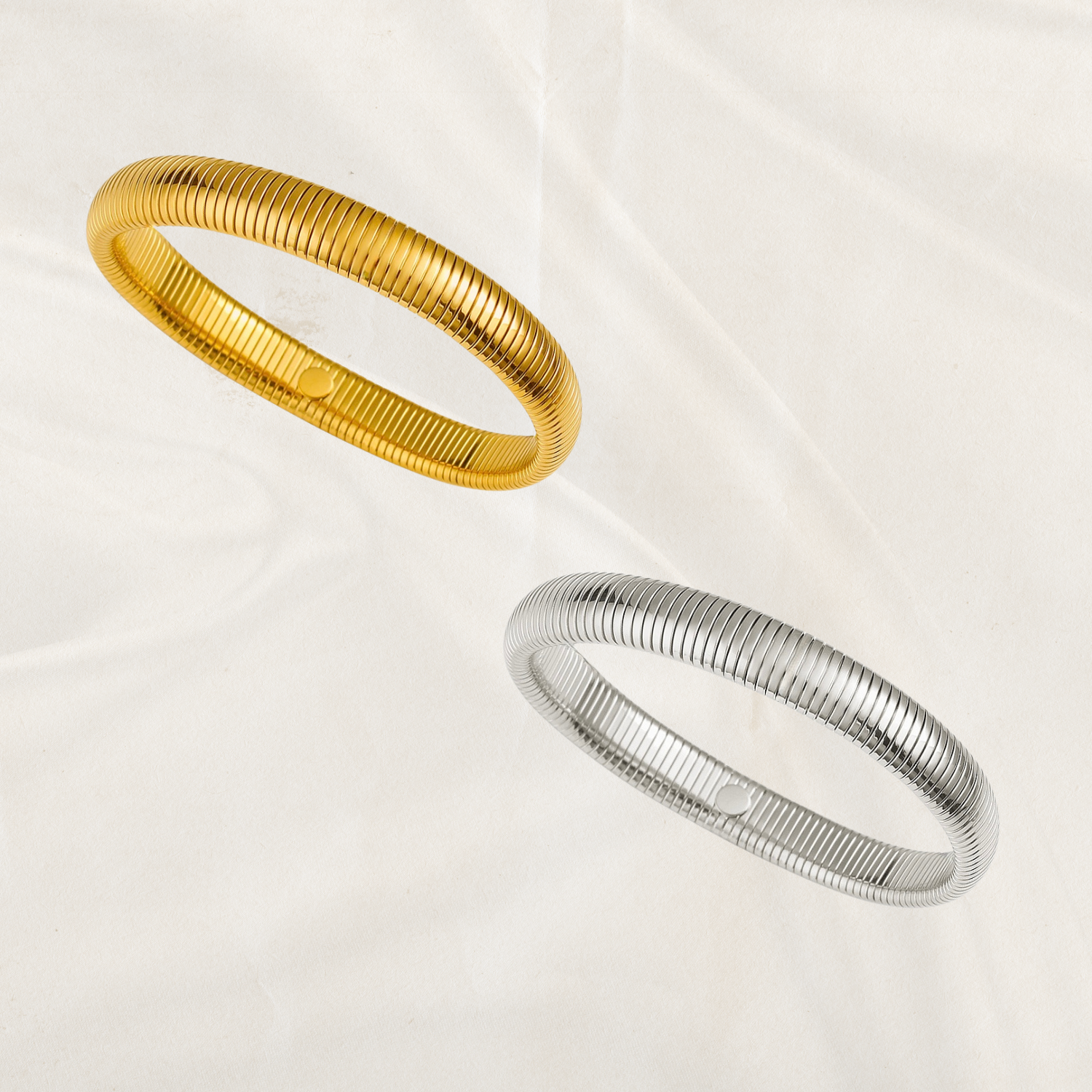 Découvrez ce bracelet intemporel au design unique. Sa structure en ressort lui confère un look texturé et un confort absolu, le rendant facile à enfiler et parfait pour toutes les tailles de poignet. C'est le classique idéal pour un style chic et quotidien.