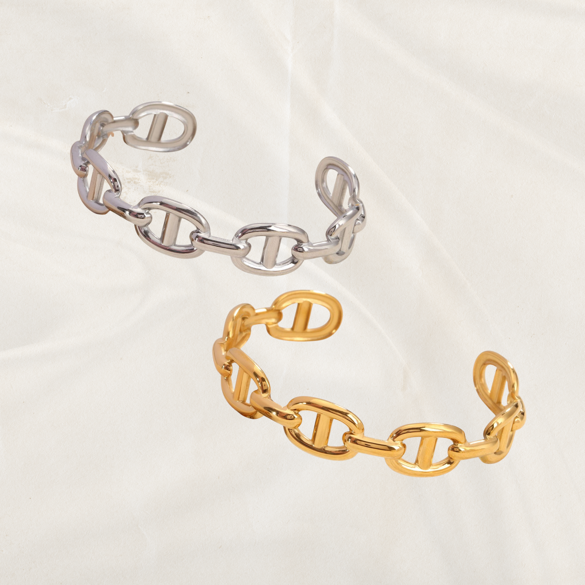 • Design : Bracelet jonc ouvert, composé d'une succession de maillons de type chaîne d'ancre, pour un look nautique et sophistiqué.